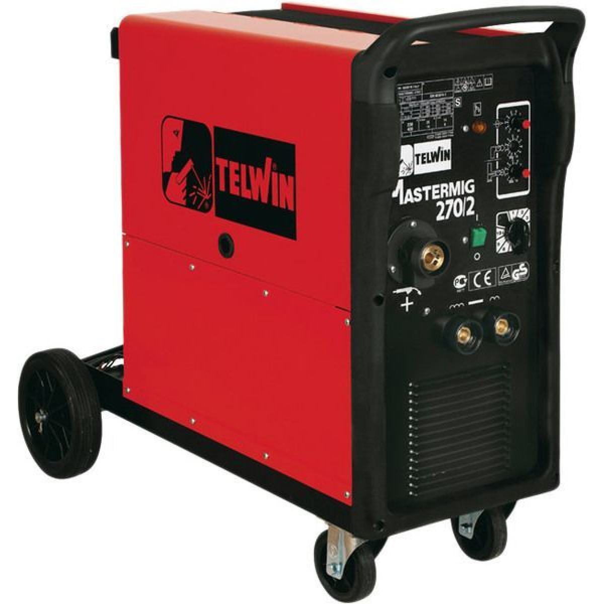 Сварочный полуавтомат Telwin MASTERMIG 270/2 укомплектован: Горелкой Редуктором код 722119 Минусовым зажимом с кабелем Роликами подающего механизма код 722112 Промеэутьочный кабель 1.