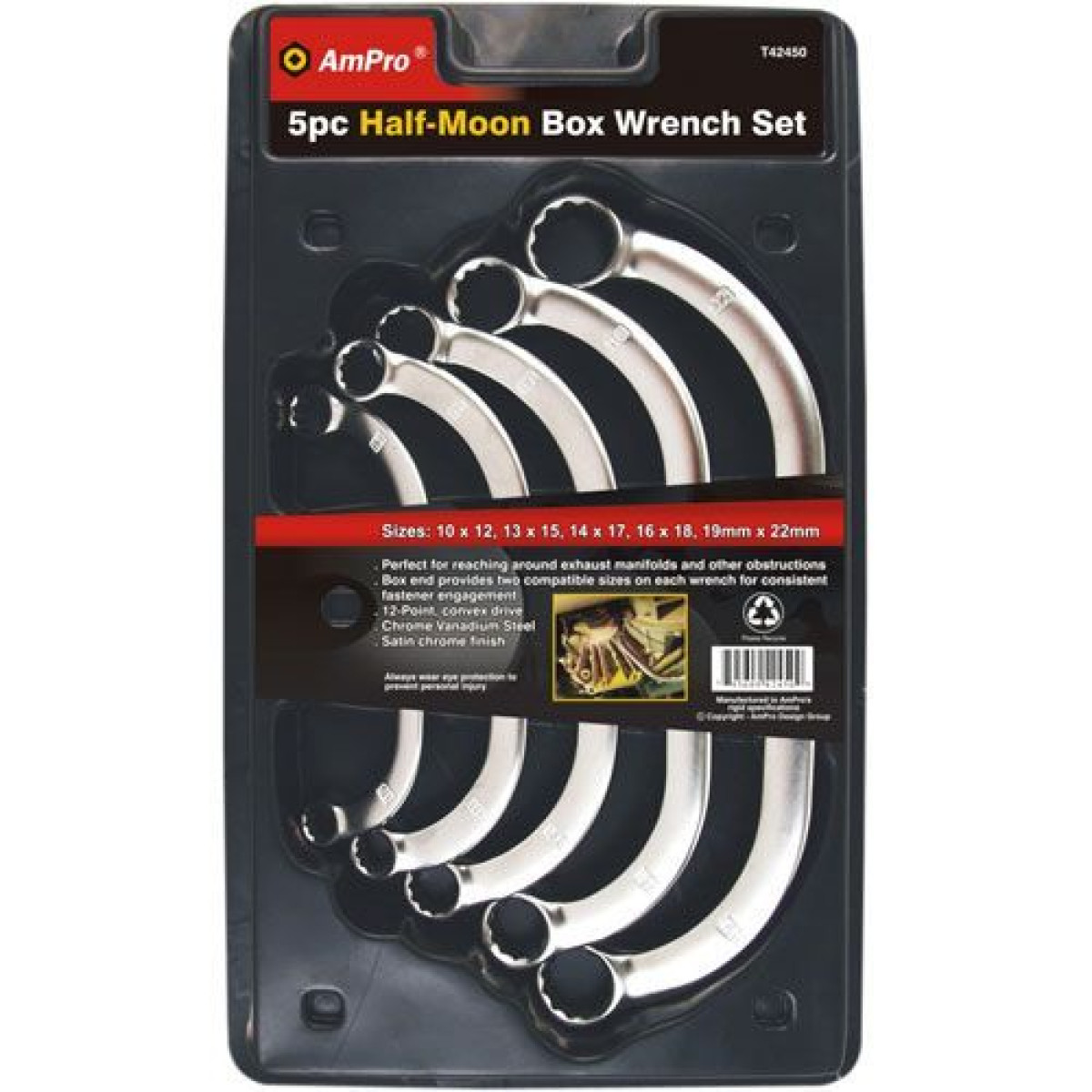 Набор ключей накидных "Полумесяц" (10-22мм), 5 предметов T42450