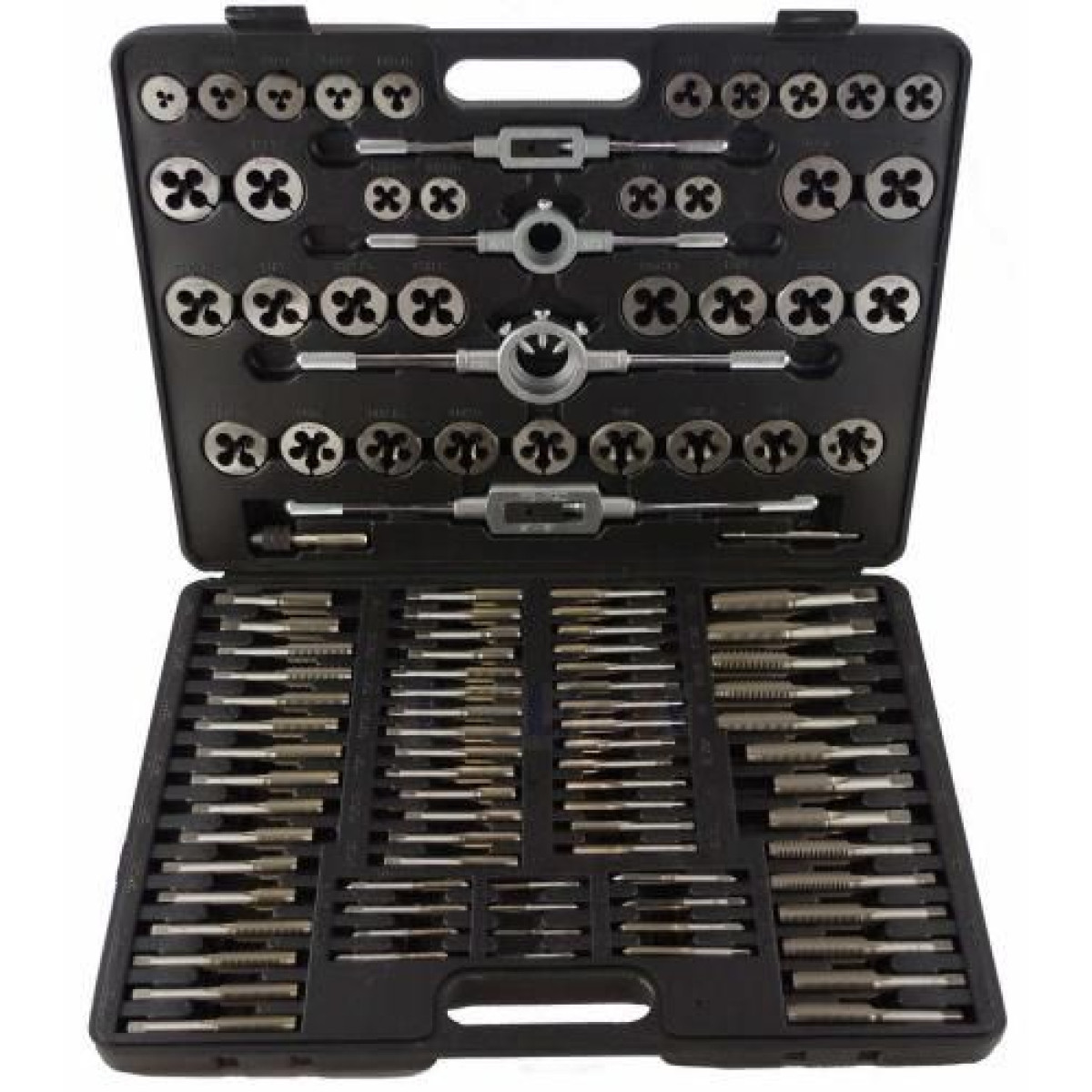 Описание Набор метчиков и плашек 110 шт в чемодане Комплектация набора: 1.