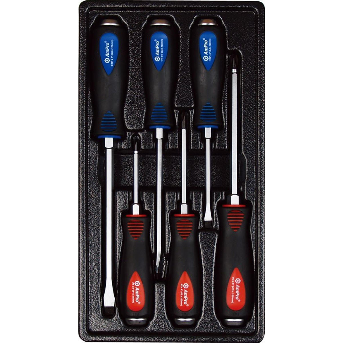 Ударные крестовые и шлицевые отвертки в ложементе, 6 предметов.