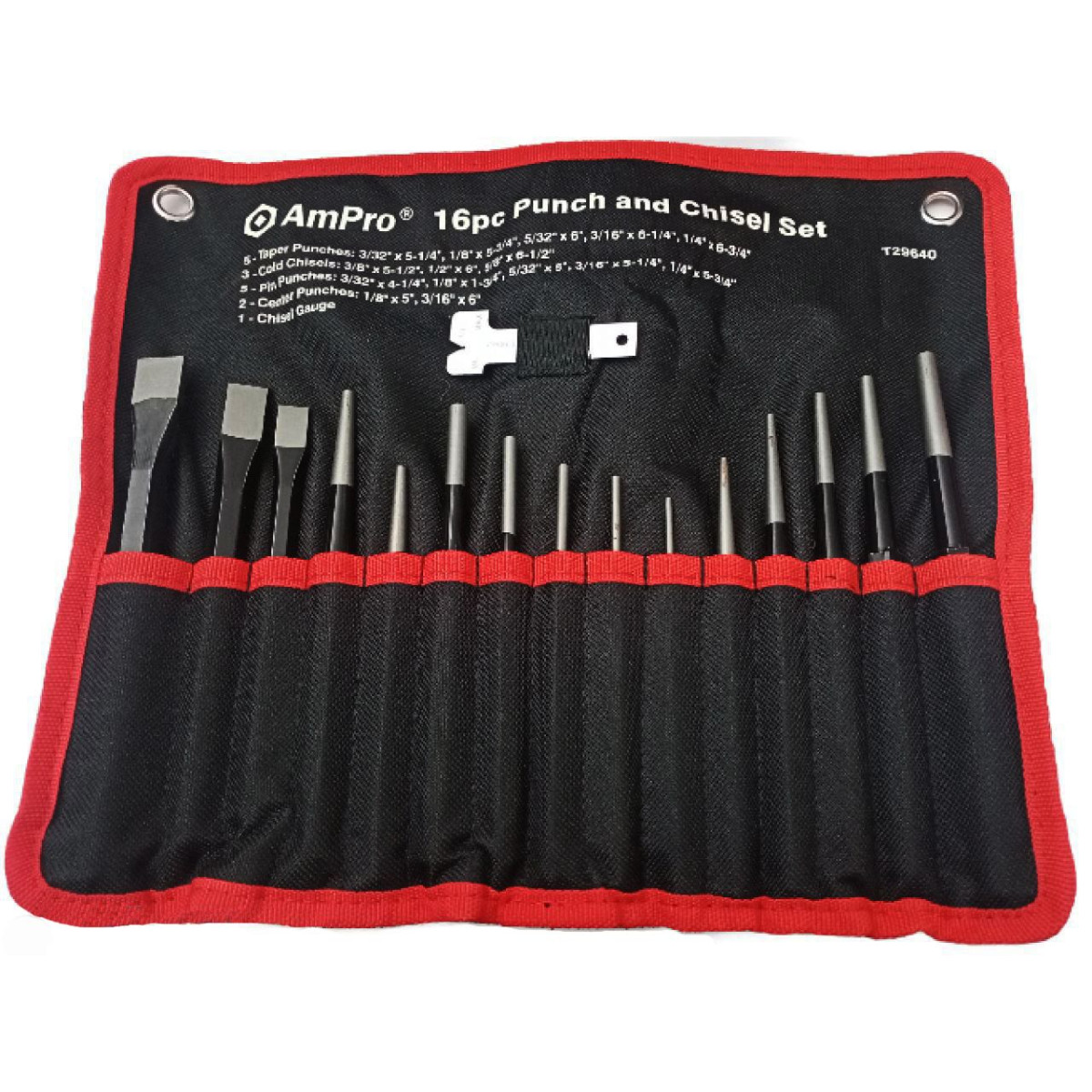Описание Набор выколоток и зубил, 16 предметов Хром-ванадий Состав: 5шт конусных выколоток:3/32" х 5-1/4", 1/8" х 5-3/4", 5/32" х 6", 3/16" х 6-1/4", 1/4" х 6-3/4" 3шт зубило: 3/8" х 5/-1/2", 1/2" х 6", 5/8" х 6-1/2" 5шт выколотки для шплинтов : 3/32"-4-1/4", 1/8" х4-3/4", 5/32" х 5",3/16" х 5-1/4", 1/4" х 5-3/4" 2 шт кернер : 1/8" х 5", 3/16" х 6" 1шт -зубило