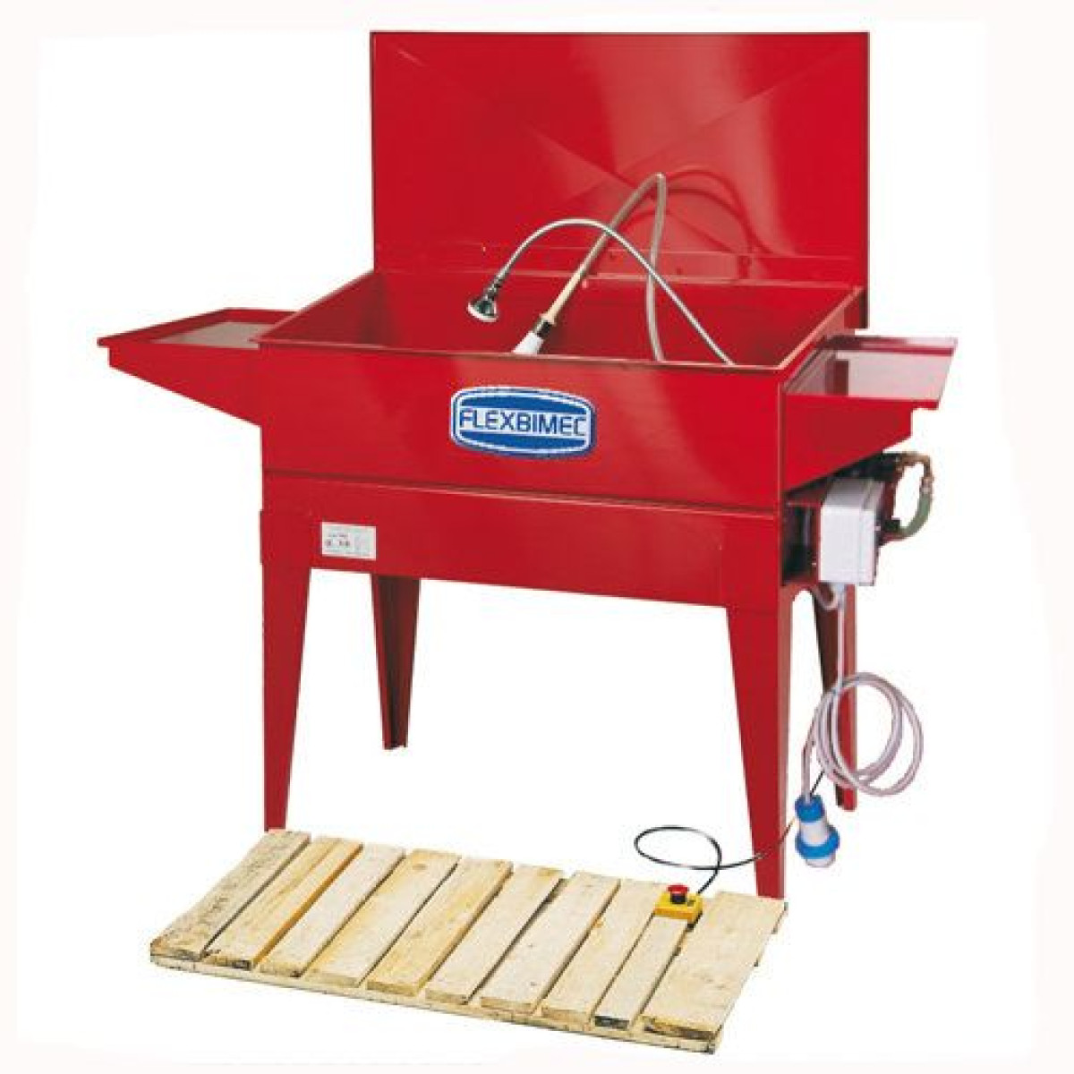 Стационарная моечная ванна с замкнутым циклом из окрашенной стали, с системой рециркуляции жидкости на 0,5 бар за счет погружного электронасоса.