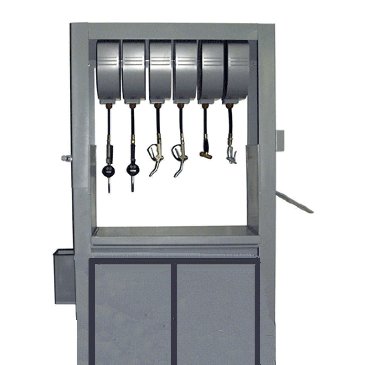 Двухколонная стойка портального типа из окрашенной стали предрасположена для крепления катушки и другого оборудования.